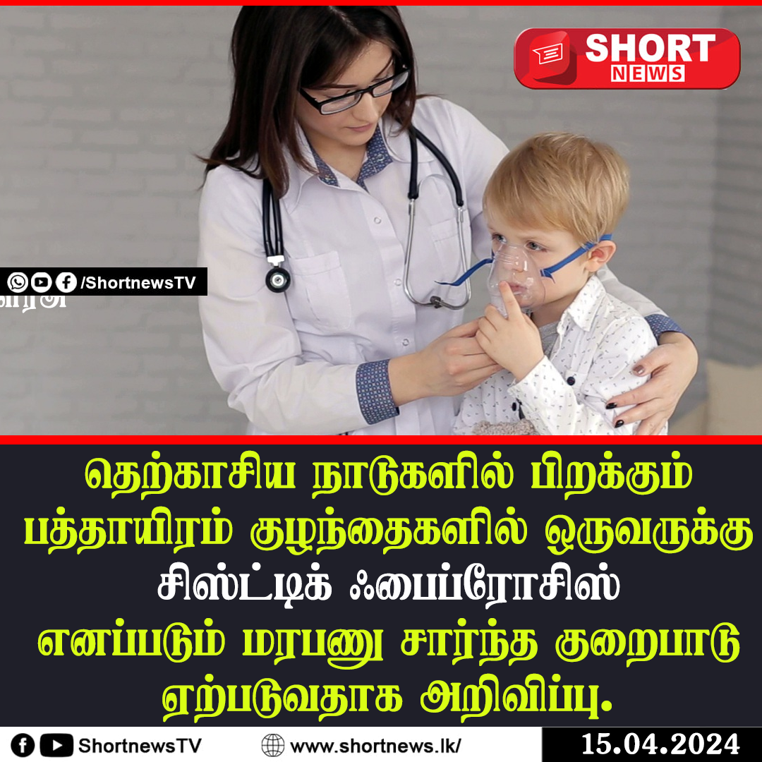 தெற்காசிய நாடுகளில் பிறக்கும் பத்தாயிரம் குழந்தைகளில் ஒருவருக்கு சிஸ்ட்டிக் ஃபைப்ரோசிஸ் எனப்படும் மரபணு சார்ந்த குறைபாடு ஏற்படுவதாகவும், இதற்கு முழுமையான நிவாரண சிகிச்சையை மேற்கொண்டால்.. அவர்களால் ஐம்பது வயதுக்கு மேல் வாழ இயலும் என்றும் மருத்துவர்கள் தெரிவிக்கிறார்கள்.